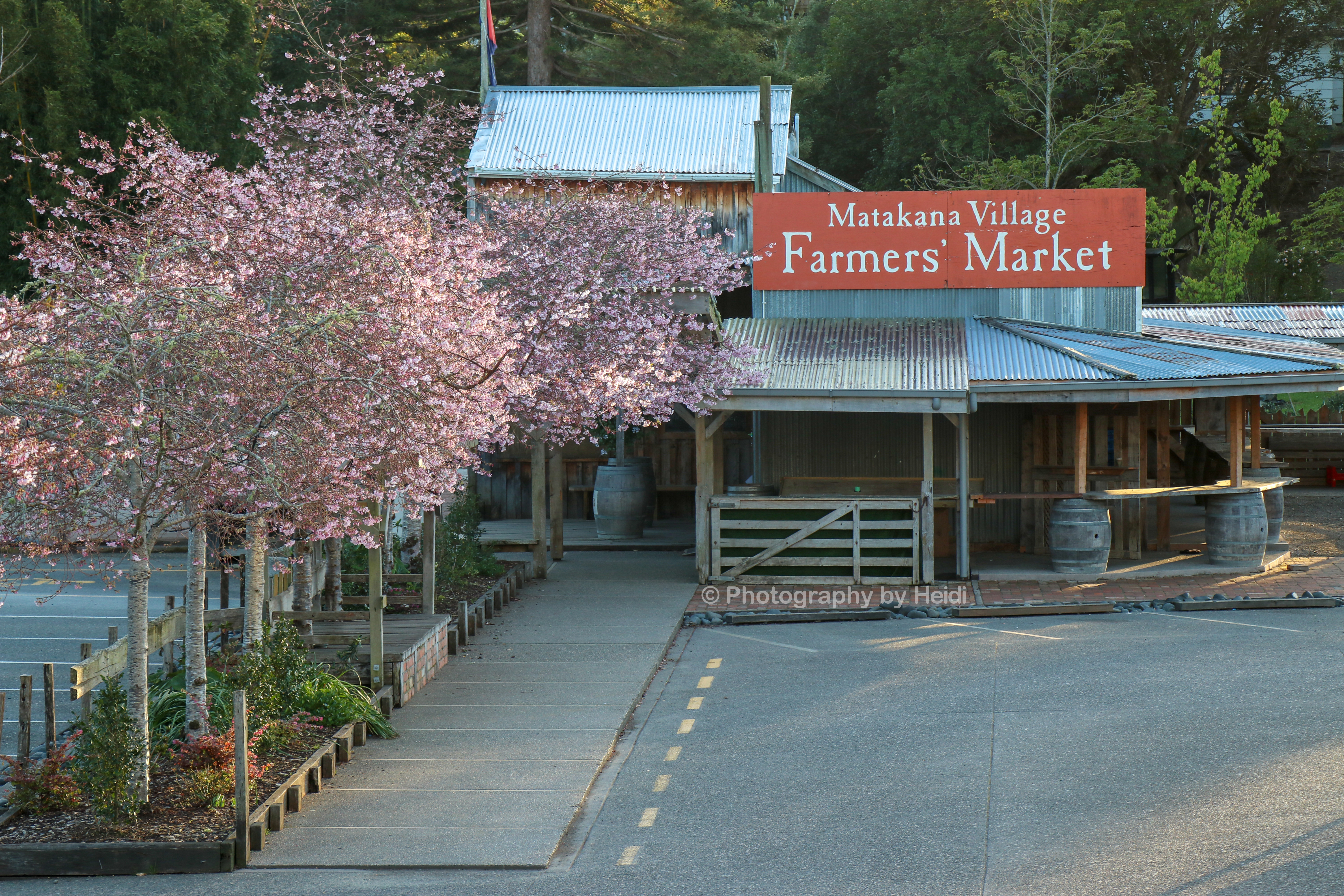 Park at the free parking lot just up from the primary school, then walk to the village, making Tramcar your first visit. Grab a takeaway coffee, a milkshake or a quick bite to eat (their burgers are amazing!) and then wander down to the Matakana Farmers Markets where in spring the entrance is filled with cherry blossom trees and fairy lights.